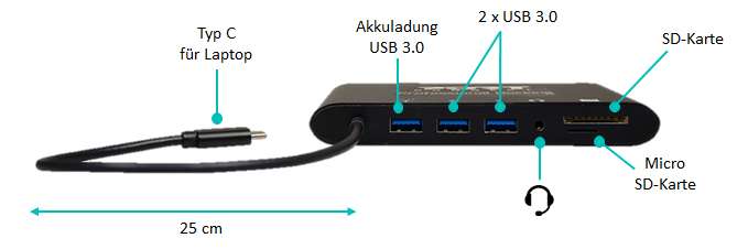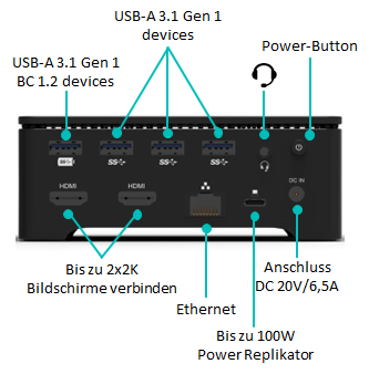 Der perfekte Begleiter für Ihre Reisen! Mit der Port Docking Station Typ C Travel 1 x 4K ++ sind Sie bestens gerüstet für Ihre Reisen. Sie erhöht die Konnektivität Ihres Laptops und dank des integrierten Power-Replikators werden 60 W Leistung bereitgestellt. |